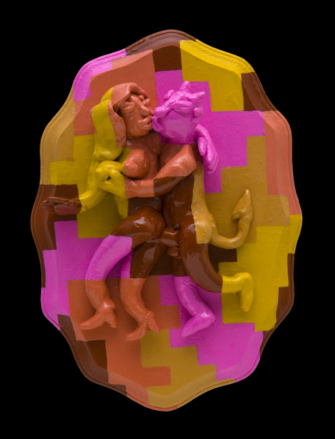 Kama Sutra Series 4 - acrylic and sculpy on board