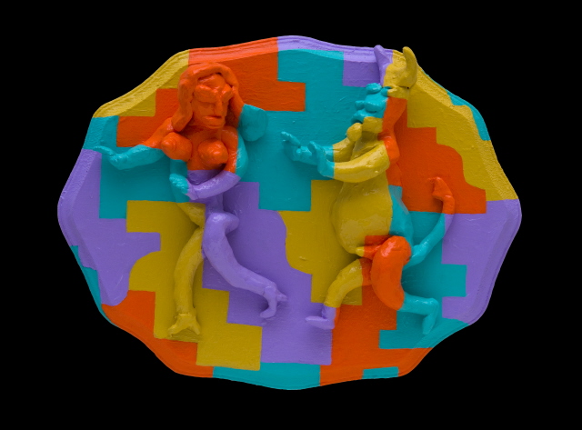Kama Sutra Series 8 - acrylic and sculpy on board