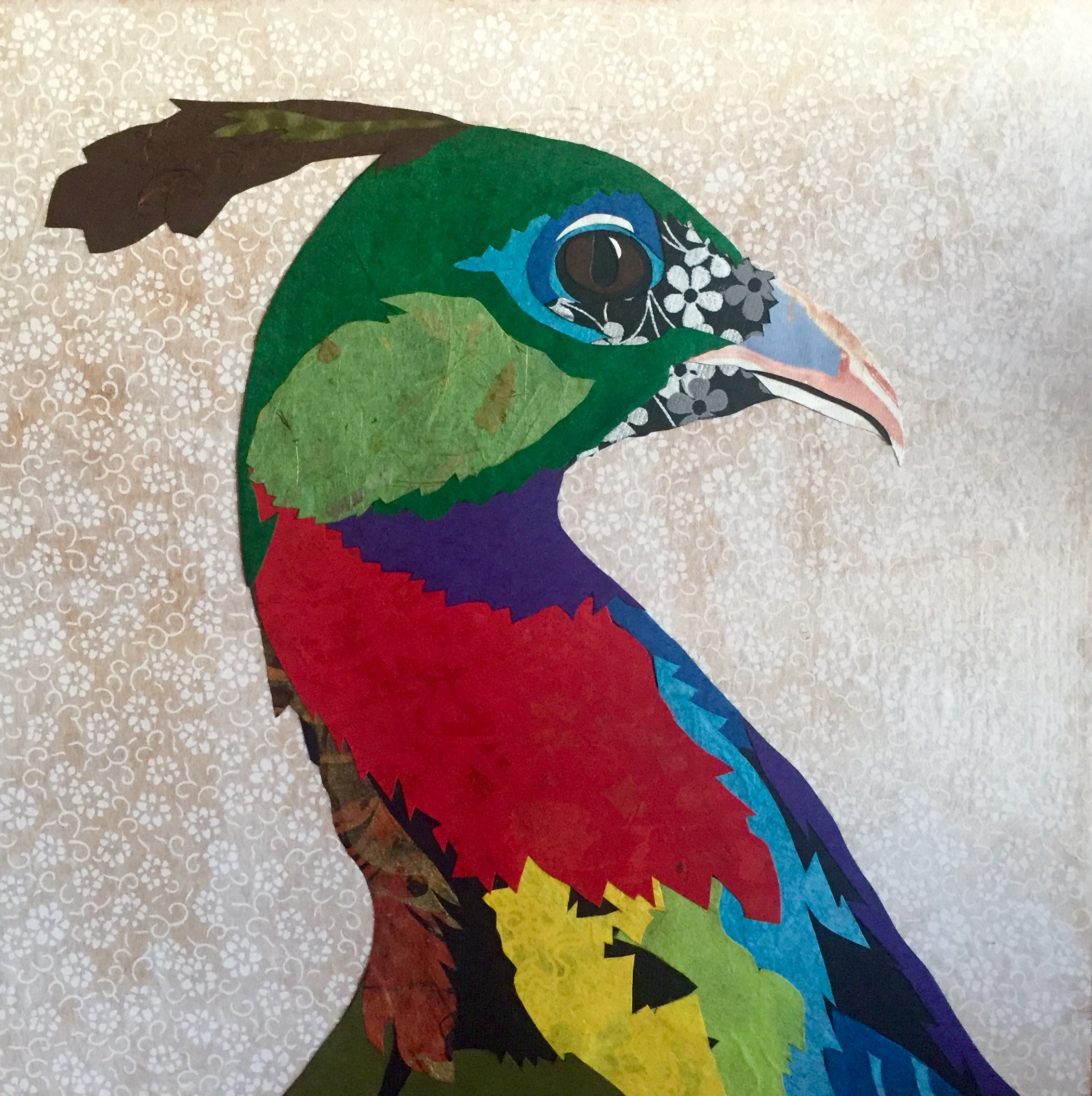 Chaitra Linehan Himilayan Monal Phesant 12x12 cut paper on board 2015